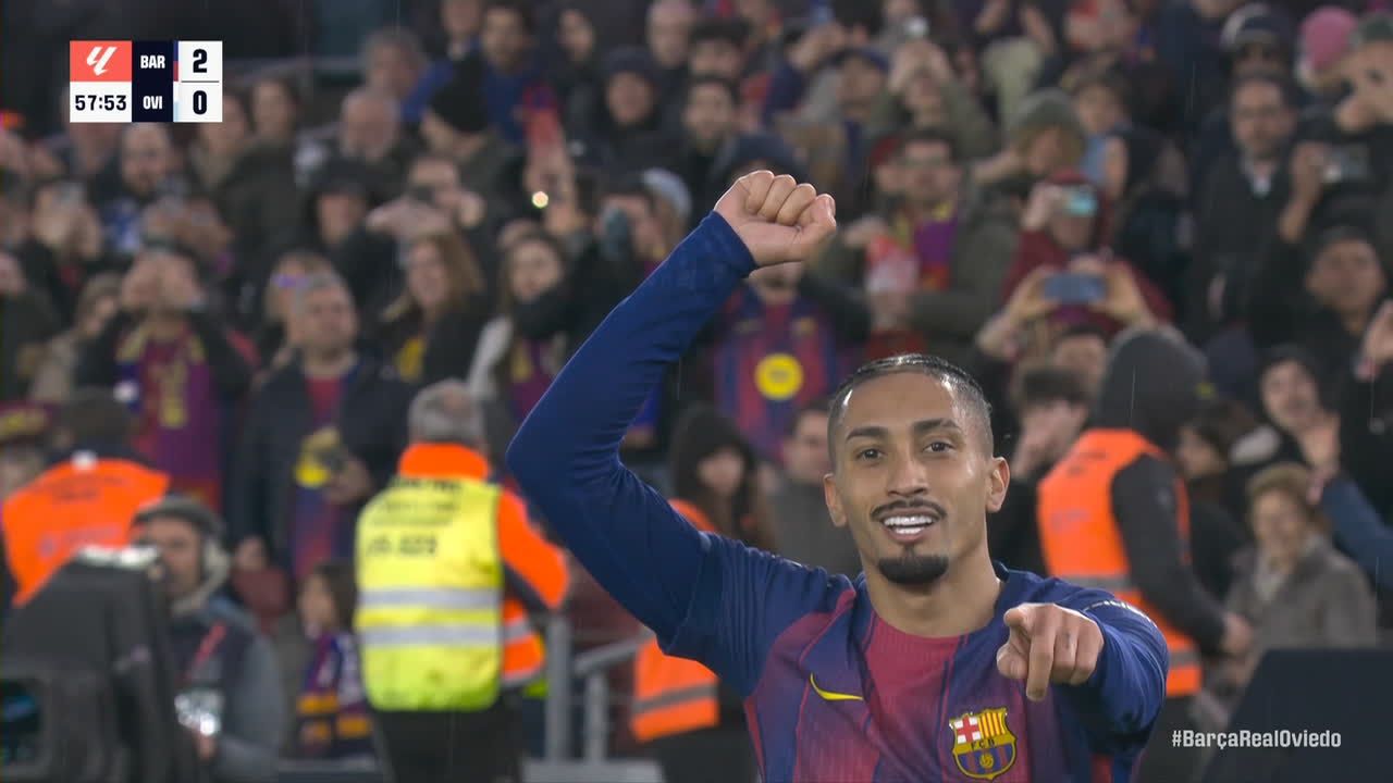 Con goles de Dani Olmo, Raphinha y Lamine Yamal, el Barcelona goleó 3-0 al Real Oviedo y se mantiene líder por la fecha 21 de LaLiga.