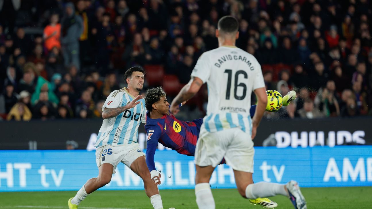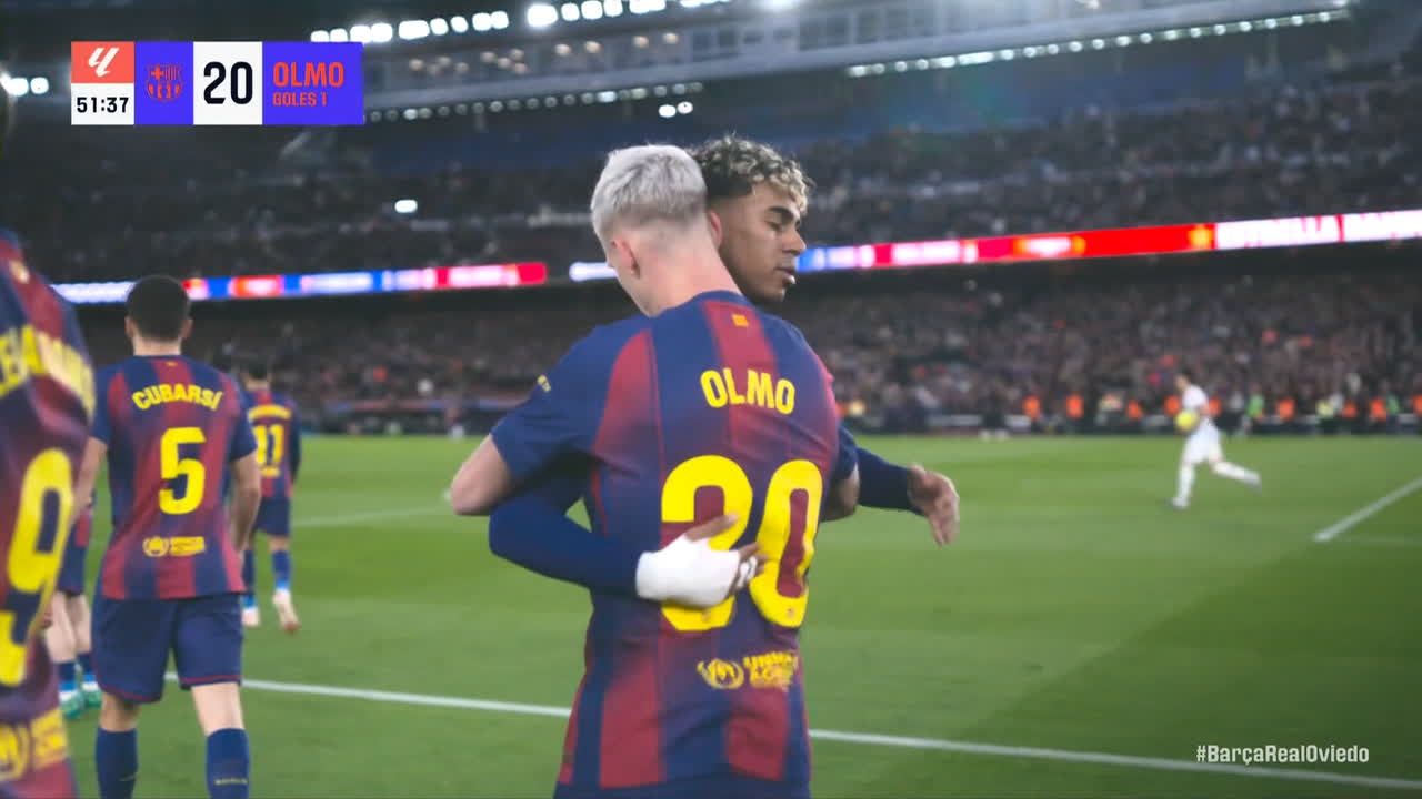 El Barcelona goleó al Oviedo para retomar la cima de LaLiga, con un golazo de 'tijera' de Lamine Yamal que fue ovacionado por el Camp Nou.