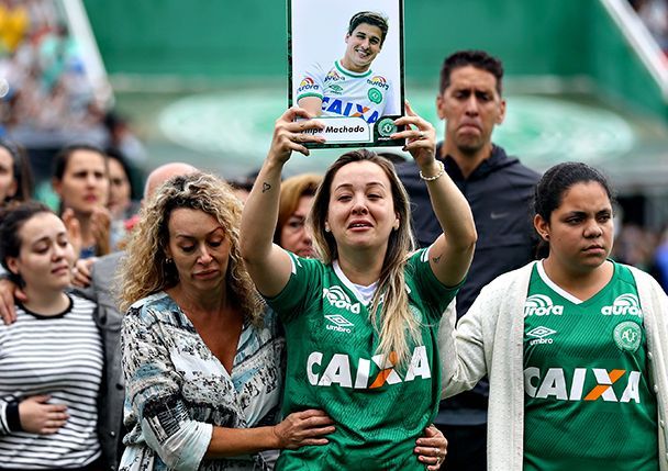 El presidente de Brasil está presente. El presidente de FIFA está presente. Cerca de 100,000 personas, o casi la mitad de la población de la ciudad, están dentro del Arena Condá o afuera de él. Hay cobertura periodística de todo el mundo en el homenaje.