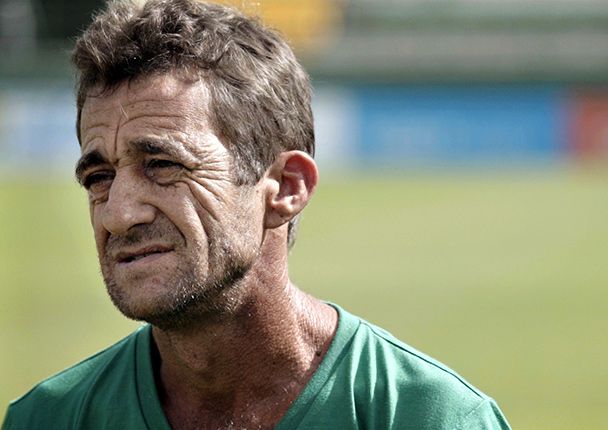 Chiquinho trata de concentrarse. Tiene un trabajo. Es el encargado del campo de juego. Él cuida el subsuelo y la capa superior. Cuida el campo de juego. Este estadio es su hogar. Los miembros del club son sus amigos.