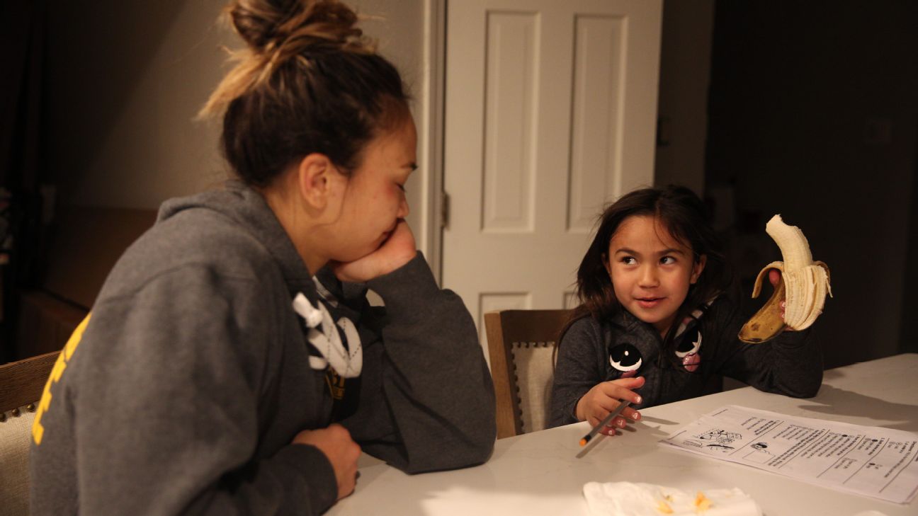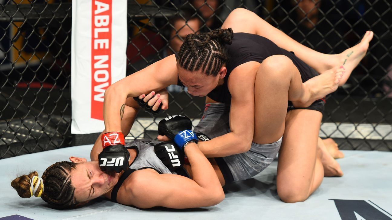 Caitlin O'Hara for ESPN LA CAMA DE ARAYA en su casa de Alburquerque está cubierta por más de una docena de animales de peluche y ella ha bautizado a todos y cada uno de ellos. Ha colocado cuidadosamente a las Hello Kitty, el hombre de nieve, el tigre y el cachorrito a su alrededor mientras ella se apresta a recordar aquella vez que la sangre corría bajo la nariz de su madre cuando Rose Namajunas le aplicó una estrangulación en 2017. Araya acababa de cumplir 6 años cuando Waterson perdió ese combate. Sin embargo, mientras que un adulto podría sentirse afectado al ver cómo la sangre caía sobre la alfombra, realmente no molestó tanto a Araya, no tanto como el gigantesco ojo morado que su madre sufrió cuando Araya tenía 3 años. "Me pongo triste", dice Araya. "Especialmente, cuando le ponen el ojo morado y cosas así". La niña se refiere a la pelea por el título de los pesos mínimos en la cual Waterson cayó ante Herica Tiburcio en 2014. En la sala de espera, luego de la derrota de Waterson, Araya lloraba mientras su madre la abrazaba fuertemente. "Oye, amor", le decía Waterson. "Estoy bien". En el video, que se puede ver en el documental Fight Girl, el ojo de Waterson está cerrado por el moretón y la mitad de su rostro está afectada. Pero Waterson le dice a Araya calmadamente: "Mami tiene que volver a trabajar en las cosas en las cuales no trabajé bien, para así mejorar". Waterson afirma que es precisamente en esos momentos que ella le explica a Araya: "Este es el empleo de mami y este es el compromiso que hice. Sé en lo que me estoy metiendo cuando entro allí". Ha habido ocasiones en las cuales, según ella recuerda, "cuando le he dicho que a Mami le duele algo y que apesta perder. Y eso me entristece, me enfurece y que está bien tener esas sensaciones". "Ella forma parte de mi trayecto", expresa Waterson con respecto a la decisión que tomó de permitir que Araya vea todas sus peleas. "Siempre he creído que uno aprende muchísimo más a través de las acciones de alguien y sólo puedo decirle hasta cierto límite. Preferiría que ella lo experimentara. Es su trayecto, tanto como lo es mío". Luego, Waterson responde a la pregunta sobre cómo ella planea criar a su hija, rodeada por un deporte que ha sido criticado por convertir a las mujeres en objetos. "La estoy criando de la única forma que sé: teniendo confianza en quién ella es. Y lo hago mediante el ejemplo". Reconoce que ella es criticada por su apodo y su pasado. "Si la gente va a sintonizar porque mi apodo de combate es 'Karate Hottie' o porque solía trabajar en Hooters, pues que así sea", afirma. "Sólo necesito que tus ojos me miren y una vez que veas que soy una verdadera practicante de las artes marciales, entonces cambiaré tu mente con respecto a la forma en la cual me percibes". Luego, Waterson suelta su adictiva risa y pregunta: "¿Quién no quiere ser una mamá atractiva?" Waterson le ganó a Cortney Casey en el UFC Fight Night de abril 2018. El sábado 30 de marzo se mide a Karolina Kowalkiewicz. Josh Hedges/Zuffa LLC/Getty Images LA COMBINACIÓN DE esa actitud y el estilo de combate de Waterson eventualmente llamó la atención de Dana White. "No hubo que pensarlo en el caso de Waterson", expresó con respecto a su decisión de contratarla en 2015. "Ella es una peleadora muy completa. Su golpe, patada, sumisiones, ella lo tiene todo. Y siempre busco por ese factor 'extra' en un peleador. Si tienes ese extra, ese factor de carisma, no hace daño. Y ella lo tiene a borbotones". De los 585 peleadores que conforman la UFC, aproximadamente 90 son mujeres. Apenas otras cinco madres han llegado al Top 10, de acuerdo con la UFC: las peso gallo Cat Zingano, Sara McMann, Marion Reneau y Yana Kunitskaya, y la peso mosca Alexis Davis. Waterson es la única competidora dentro de la división más ligera, la división de los pesos mínimos de 115 libras, que llega al Top 10. "Ser peleadora hace que formes parte de un deporte completamente egoísta. Ser madre es un acto completamente generoso", explica Waterson. "No puedes simplemente llegar a casa después de un duro día de entrenamientos y olvidarlo. La pelea sigue presente. Y luego Araya tiene tareas que hacer y en esos momentos no puedo ser esa ruda peleadora. Tengo que ser esta madre alentadora que ella necesita". Holm se maravilla por la forma en la cual Waterson es capaz de hacerlo, especialmente durante intensas sesiones de campo de entrenamiento previas a una pelea importante. "Sé cuánto esfuerzo se requiere, la disciplina que se necesita", afirma. "Sé cuántas cosas tengo que alejar de mi vida a fin de tener un campo de entrenamiento óptimo. No sé si podría hacerlo si tuviera un hijo." Araya sabe que la vida cambia cuando comienza el campo de entrenamiento. "Tengo que entrenar", le dice su madre. "Ella dice eso", explica Araya. "'Tengo que trabajar duro'. Ella dice eso también. 'No puedo perder tiempo'. 'Tengo que concentrarme en lo que estoy haciendo'. ¡Cosas así!". Waterson indica que existen días en los cuales, simplemente, es incapaz de levantarse del sofá después de una fuerte sesión de entrenamiento; por ello, su madre frecuentemente volará para visitarla durante un mes y ayudarla a cocinar, limpiar y colaborar con Gómez en el cuidado de Araya. Esto causa que Gómez se haga filosófico: "Ser capaz de poner el ego a un lado cuando es necesario por parte de tu familia, tu esposa, tu hija, es sumamente necesario, ¿cierto? Me han pintado las uñas, me han puesto pintura de labios, me han hecho toda clase de locuras. Sin embargo, ser hombre causa que uno haga cosas que se pensarían son débiles cuando no lo son. De hecho, es más difícil". Waterson dijo que había una estigma contra las mujeres que caen embarazadas para empezar una familia mientras entrenan en MMA. Caitlin O'Hara para ESPN ES EL DÍA DEL EVENTO UFC 229 y Waterson y Gómez están preocupados por la seguridad de Araya. Gómez ha escuchado rumores durante seman