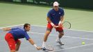 El argentino Eduardo Schwank se agacha ante el saque de su compañero Horacio Zeballos