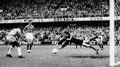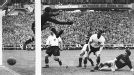 Pelé convierte el tercer gol para Brasil en la final ante Suecia, que se se jugó el 29 de junio