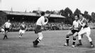 Derek Kevan convierte el descuento para Inglaterra ante la Unión Soviética; este partido del Grupo D terminó 2 a 2