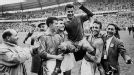 Los jugadores de Brasil celebran la victoria sobre Suecia en Estocolmo; era la primera selección que ganaba un Mundial fuera de su continente