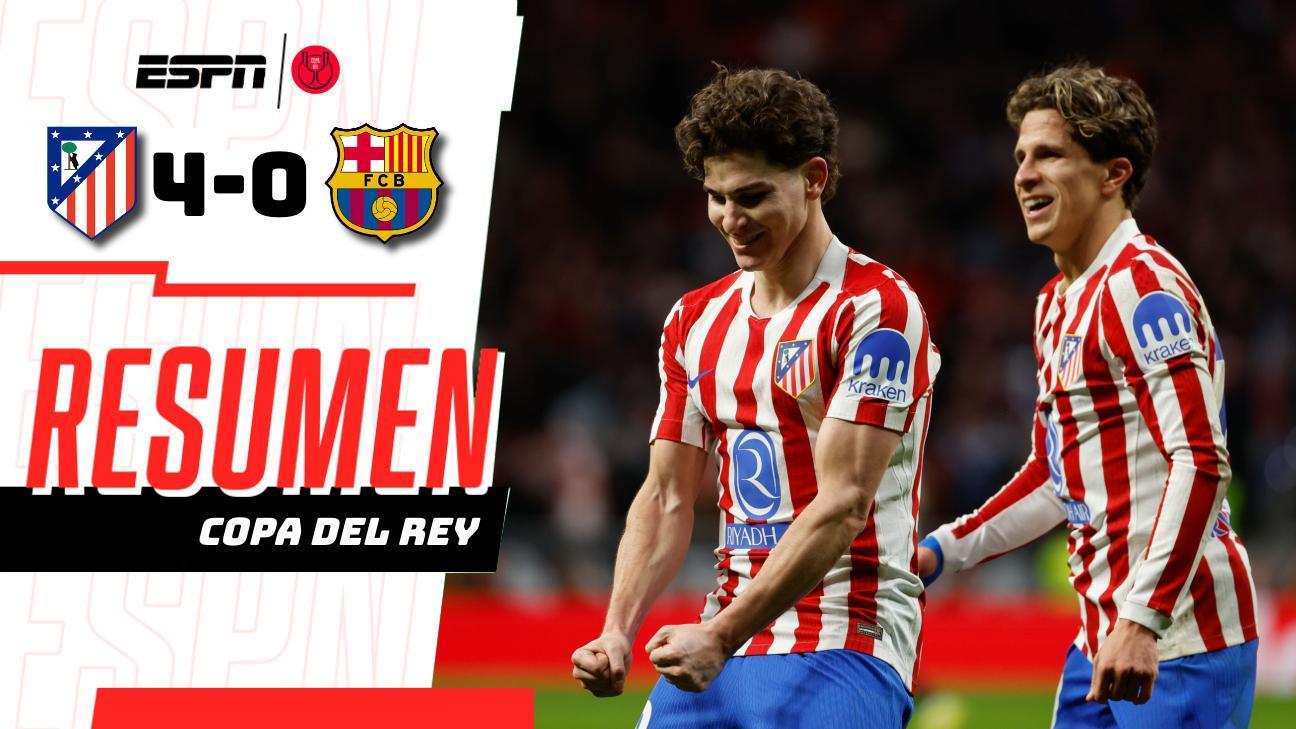 Atlético de Madrid golea 4-0 al Barcelona en la semifinal de Copa del Rey