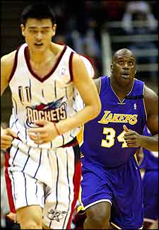 Shaquille, con dolencia del dedo gordo del pie, recorrió la cancha para alcanzar a Yao Ming, quien tuvo problemas con un dedo de la mano.