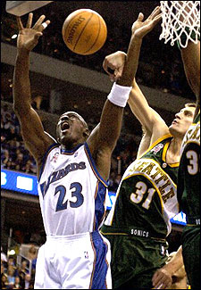 El escolta Michael Jordan falló los primeros 14 tiros de campo que intentó y se quedó con 15 puntos en la derrota de los Washington Wizards ante los Seattle SuperSonics.