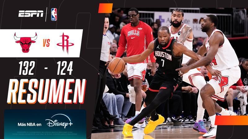 Fue 132 a 124 para Chicago en casa. Sexton, con 25 puntos, fue el goleador del ganador. KD, 40 tantos para Houston.
