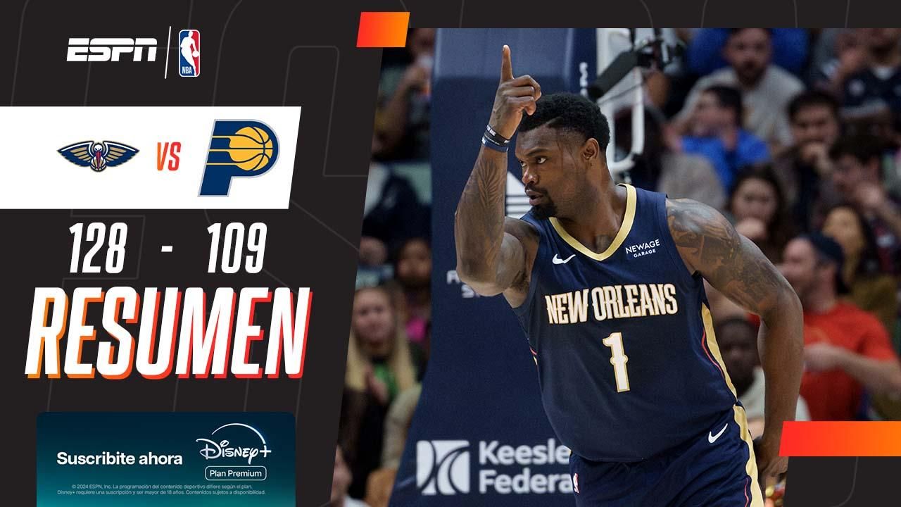 Con un gran trabajo de Zion Williamson (29 puntos); New Orleans ganó por 128 a 109. Siakam aportó 22 en Indiana.