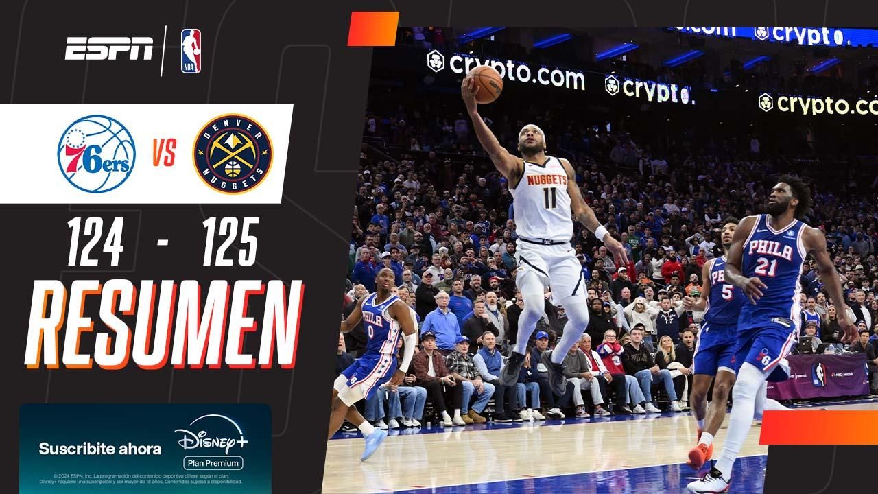 Los Nuggets, aún sin Jokic, se llevaron un triunfazo en casa de los Sixers por 125-124. El número 11 convirtió el doble definitivo en el ganador, cuyo líder fue Watson (24 puntos). Las 32 unidades de Embiid y las 28 de Maxey no bastaron en el local.