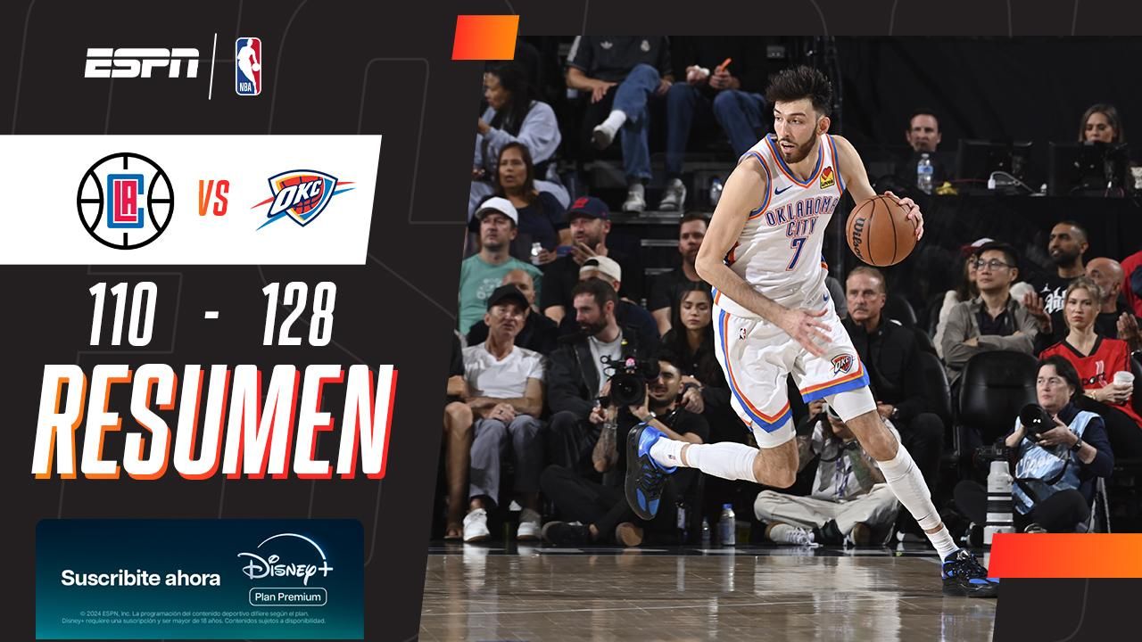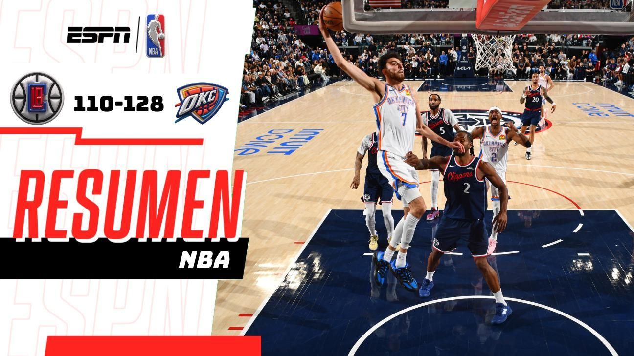 Chet Holmgren firmó 30 puntos y 14 rebotes, mientras Shai Gilgeous-Alexander aportó 20 puntos y 11 asistencias para que el Thunder asegurara el mejor récord de la temporada regular con victoria 128-110 sobre Clippers.
