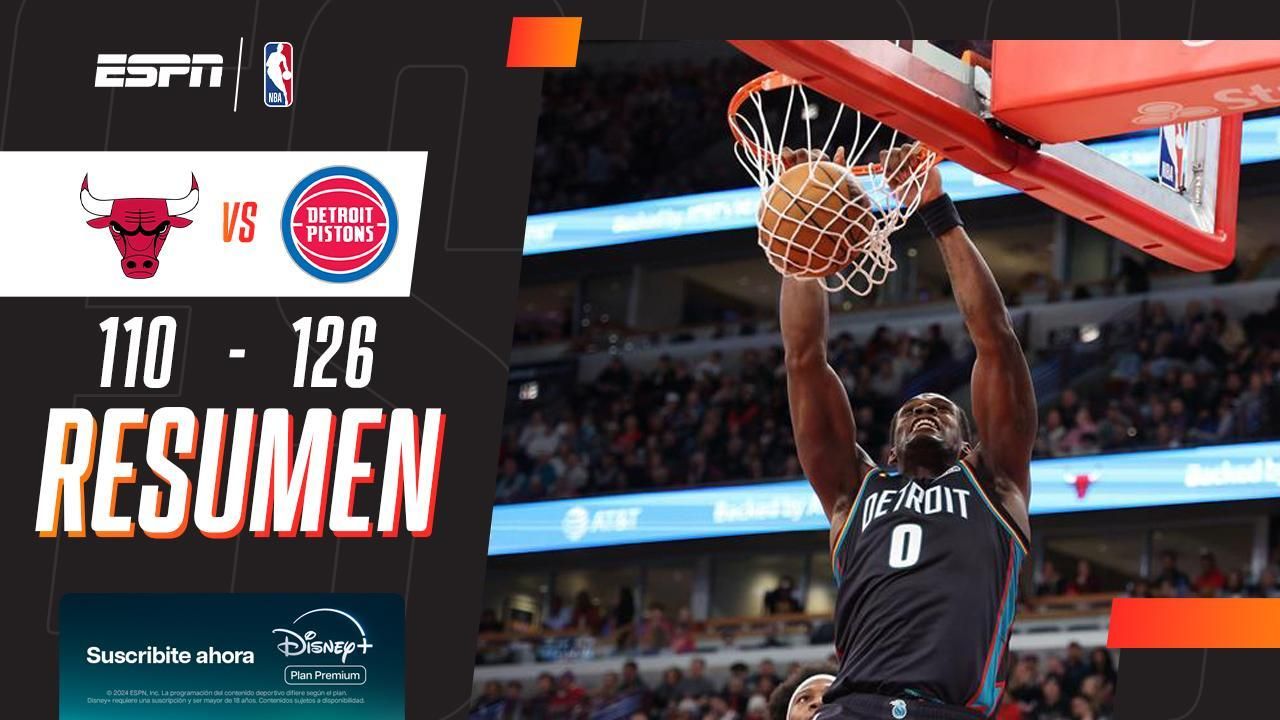 Los de Detroit vencieron por 126-110 a los Bulls y alcanzaron su quinta victoria consecutiva. Jalen Duren fue el más destacado con un doble-doble (26 puntos y 13 rebotes).