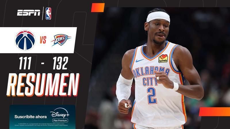 Oklahoma superó por 132 a 111 a Washington, con 40 puntos de su estrella Shai Gilgeous-Alexander.
