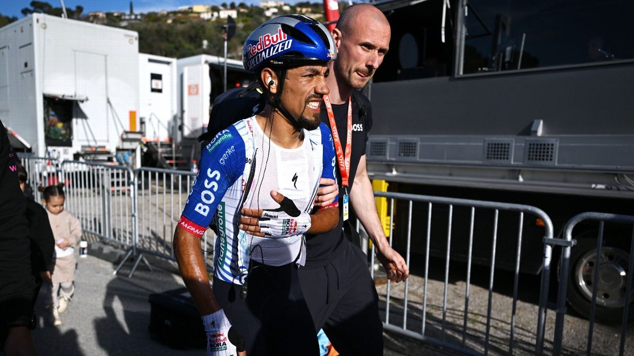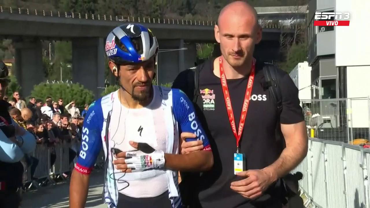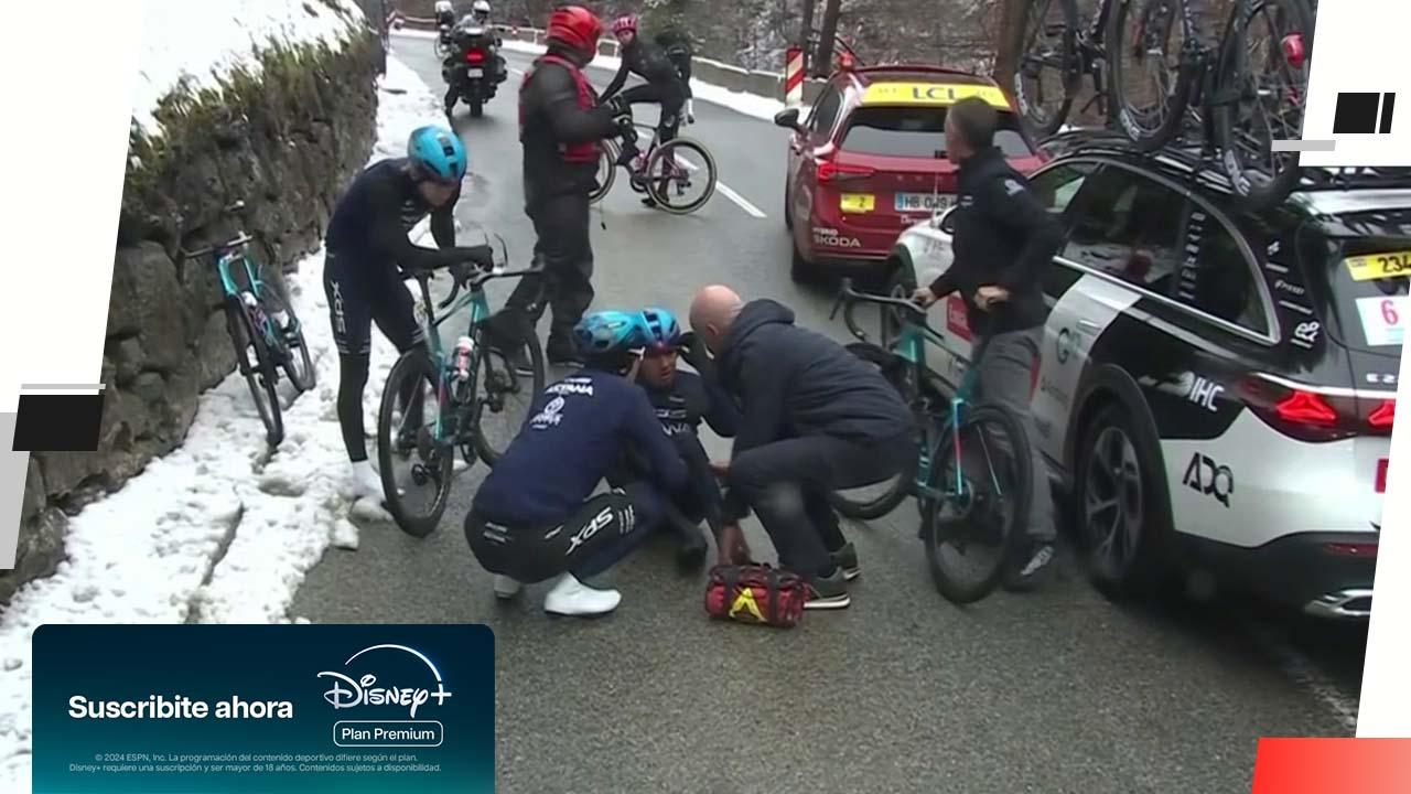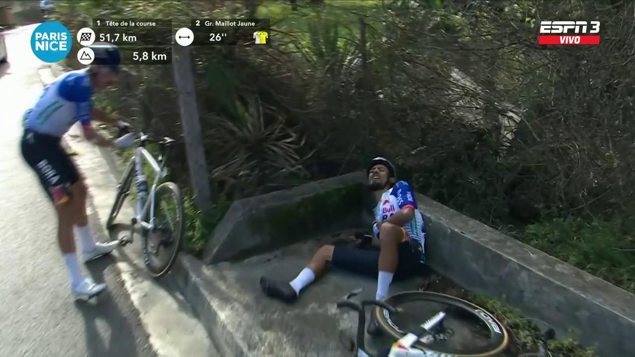 El colombiano terminó en el suelo tras un empujón accidental de un compañero, un incidente que comprometió sus opciones de podio en la Paris-Niza.