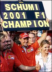 Confiabilidad. Las Ferrari F2001 se rompen poco. Los dos coches terminaron en ocho de las 13 competencias. En cambio, McLaren sólo llegó con ambos MP4/16-Mercedes-Benz en cinco carreras. Schumacher paró solamente en San Marino y Alemania.