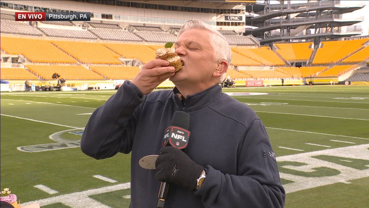 Al grito de Monday Night Football, John Sutcliffe comparte el postre en Acrisure Stadium oara disfrutar el último juego de la Ronda de Comodines.
