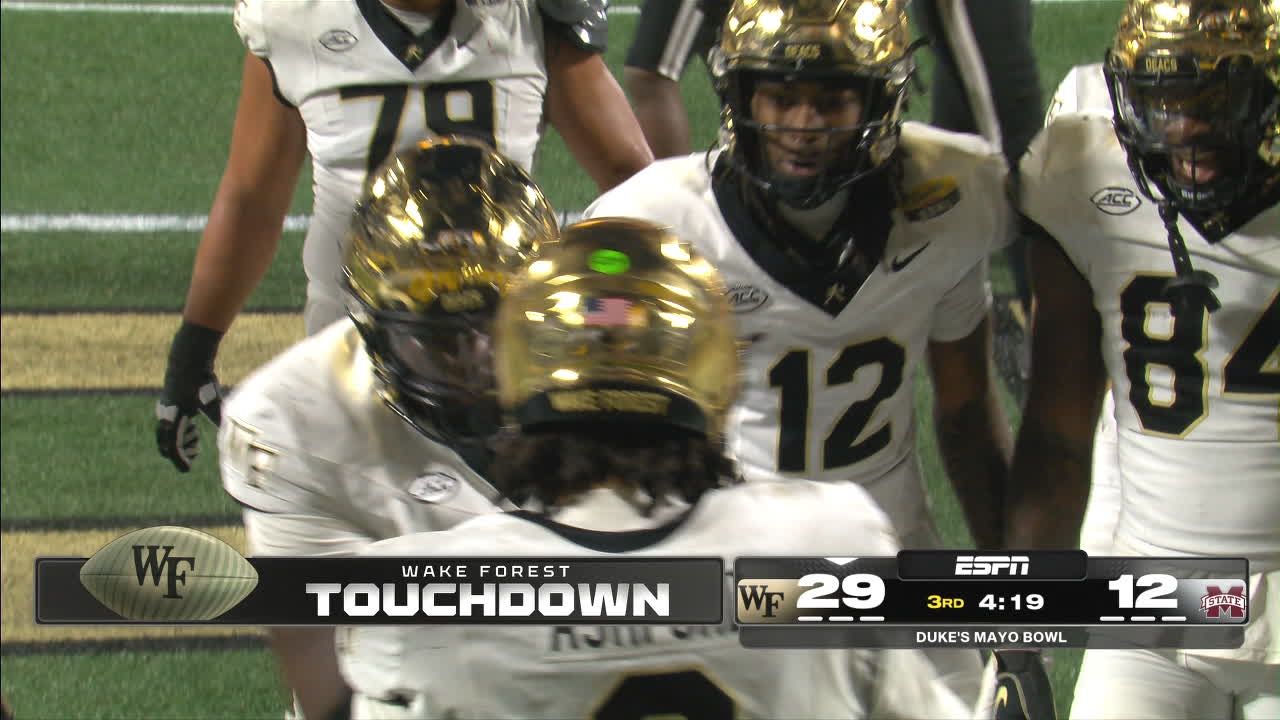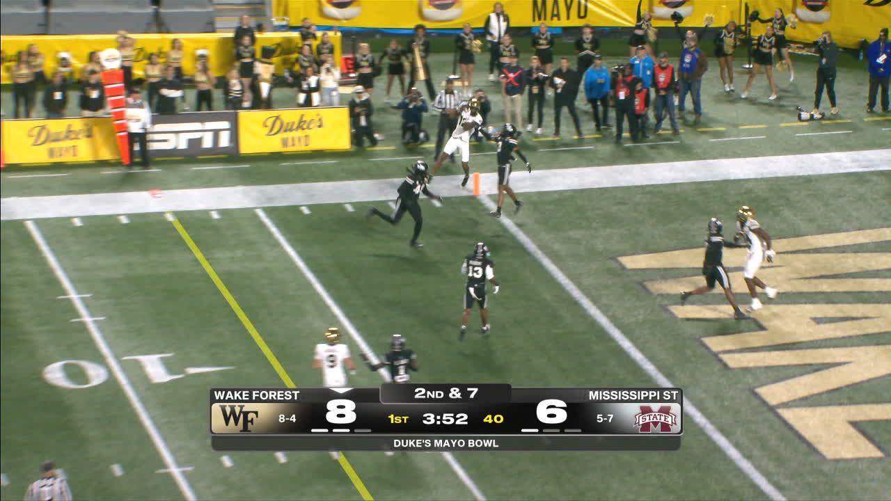 El receptor de Wake Forest anota por aire con un pase largo de 64 yardas, ampliando la ventaja y poniendo más distancia ante Mississippi State.