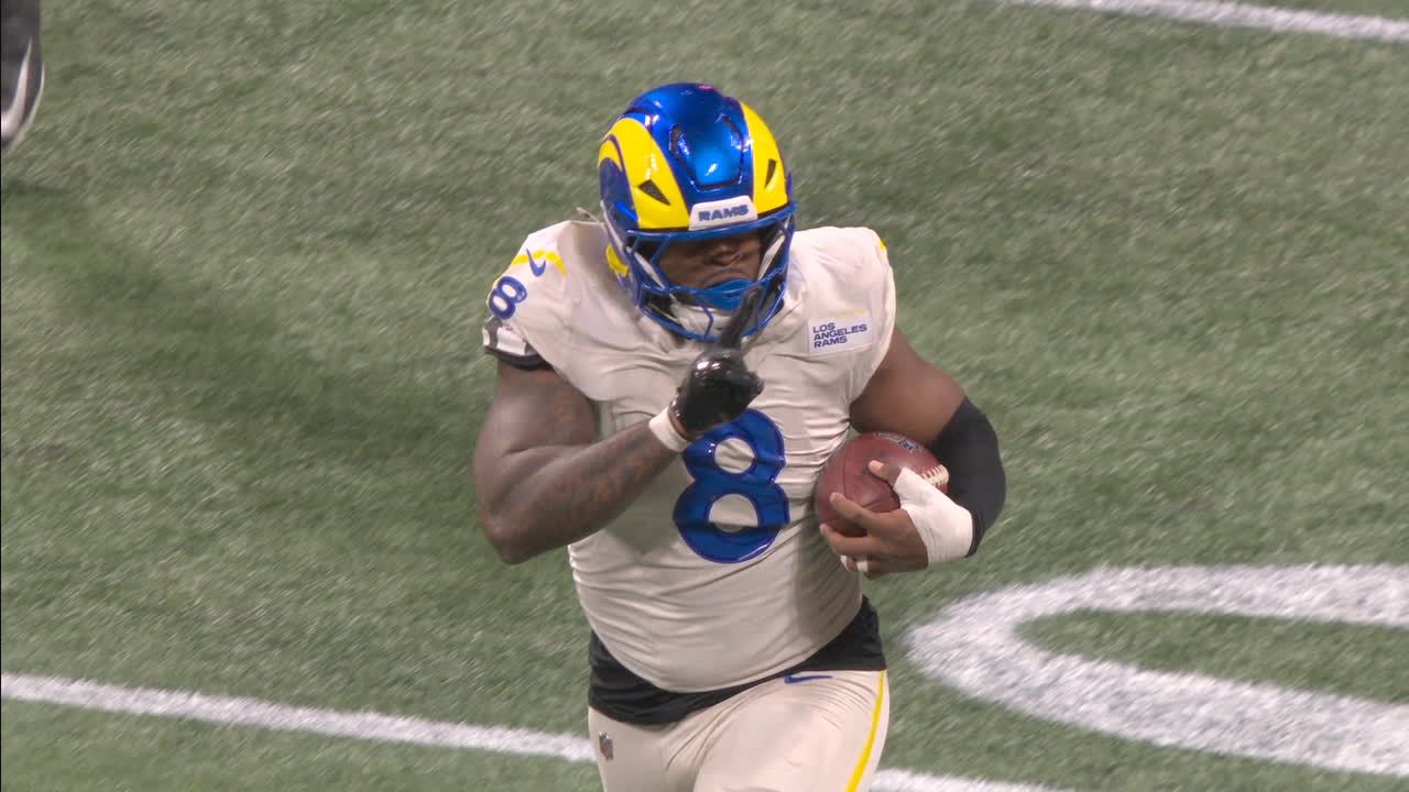 Jared Verse hace una jugada enorme: bloquea la patada y la devuelve hasta la zona prometida para meter de lleno a Los Ángeles en el partido.