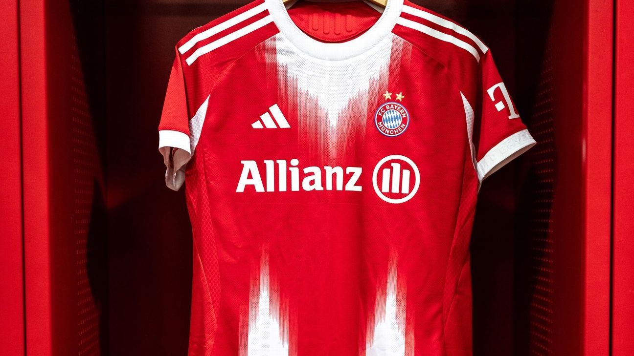 En comparación con su llamativa camiseta como visitante, la equipación local del Bayern para la temporada 2025-26 es, afortunadamente, más discreta, con un patrón de «camuflaje» en tonos gris y coral descoloridos que pretende ser un homenaje al Allianz Arena, ya que está compuesto por diferentes muestras y franjas de la arquitectura y el revestimiento exterior del estadio.
