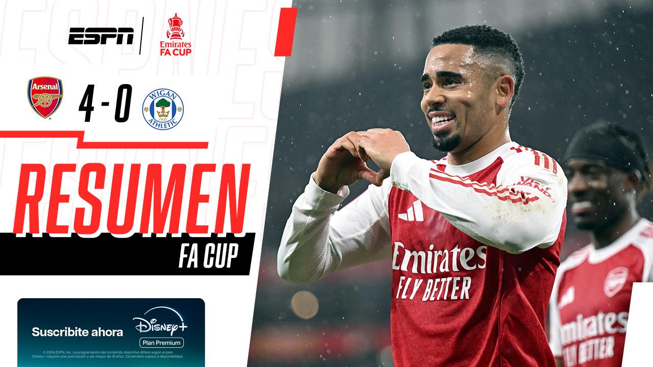El Arsenal necesitó solo media hora de la primera parte para sellar una goleada ante el Wigan por 4-0 y sellar su pase a los octavos de final de la FA Cup.
