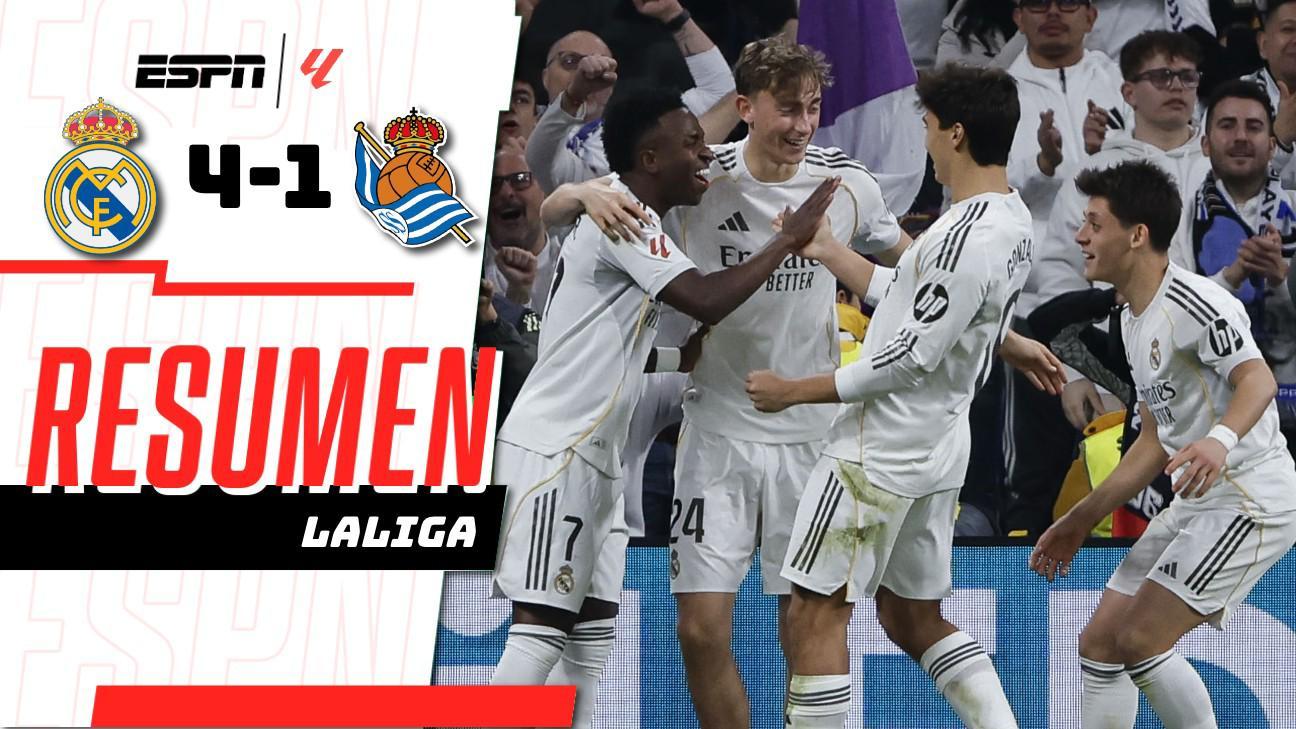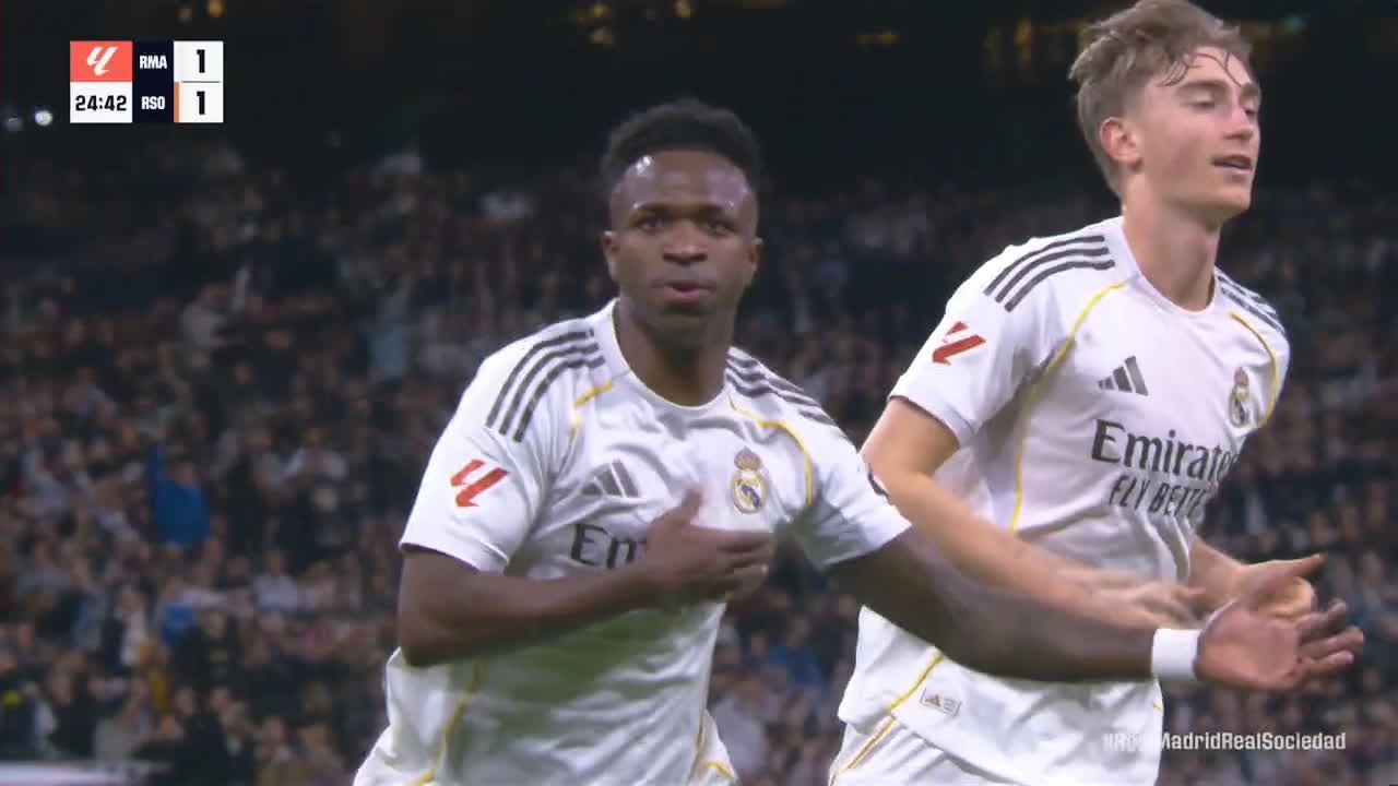 El Real Madrid golea a la Real Sociedad por 4-1 con doblete de Vini Jr