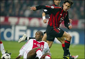 Filippo Inzaghi buscó por todos lados, pero le fue imposible quebrar el arco del Ajax.
