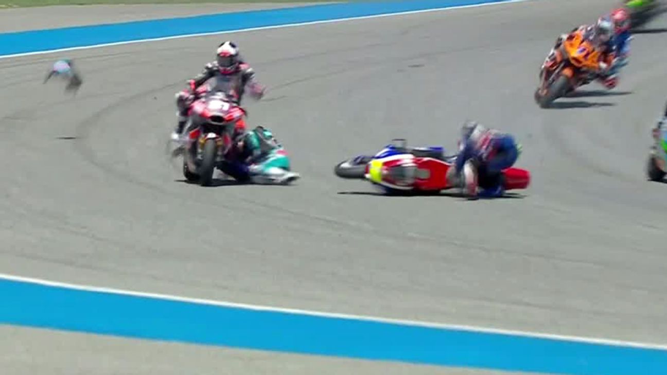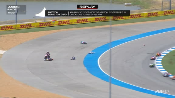 El colombiano rodó, fue embesito por una moto y terminó impactando otra en el GP de Tailandia de Moto2.