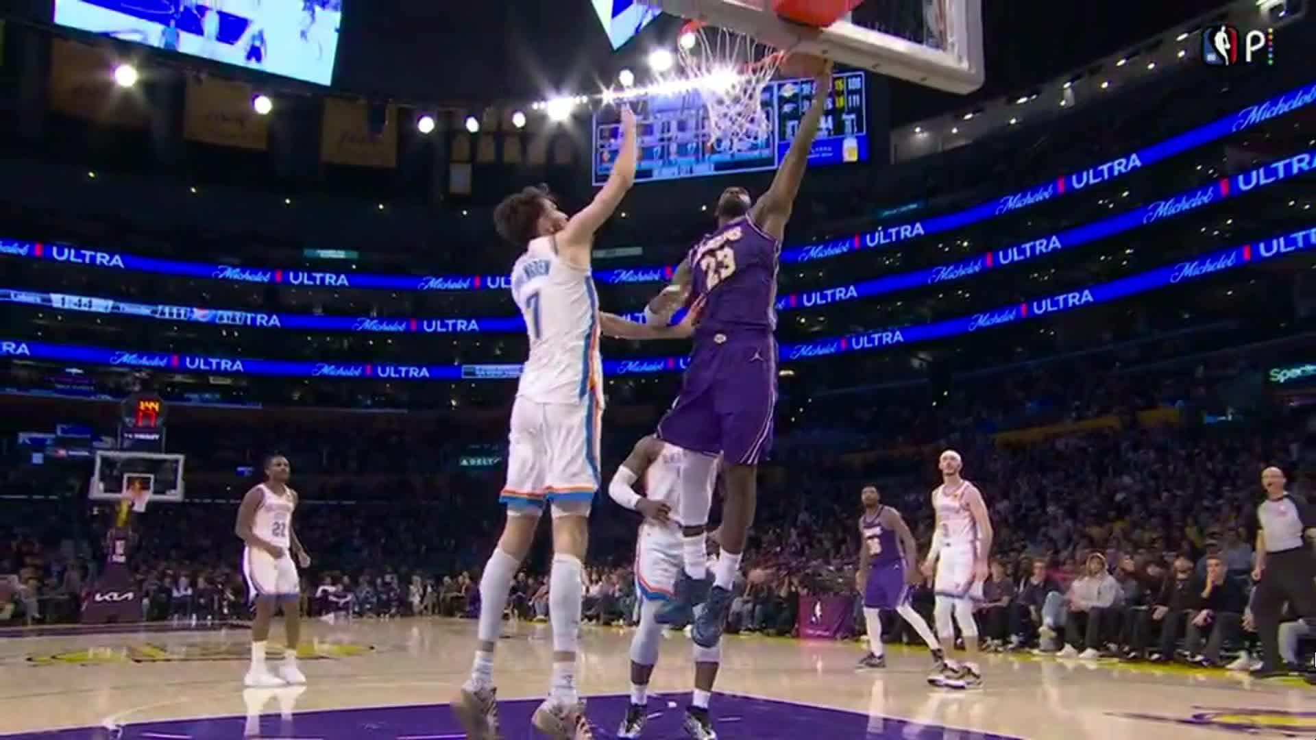 Lakers logran reducir diferencias ante Thunder con esta volcada de LeBron James.