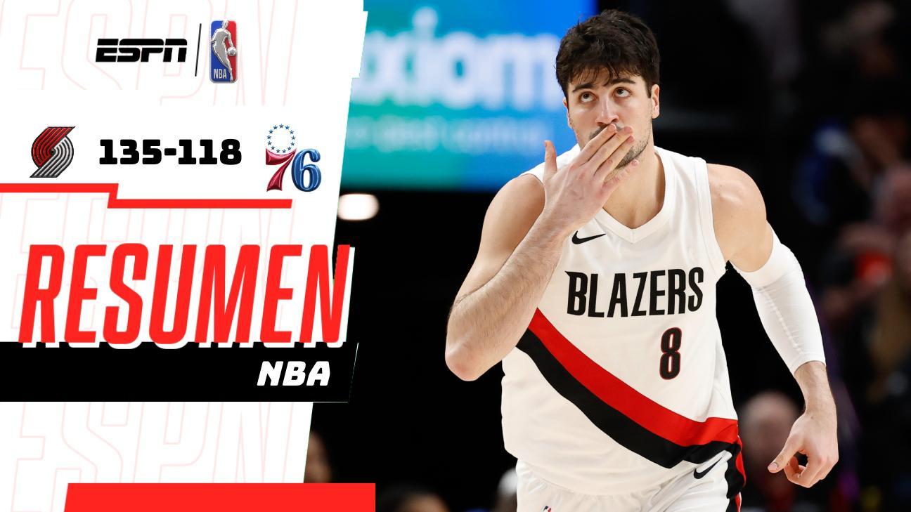 Toumani Camara anotó 30 puntos, su mejor marca personal, y encestó 8 de 10 triples. Deni Avdija anotó 26 puntos y capturó 10 rebotes, y los Portland Trail Blazers aprovecharon un gran tercer cuarto para lograr una victoria cómoda por 135-118 sobre los Phi