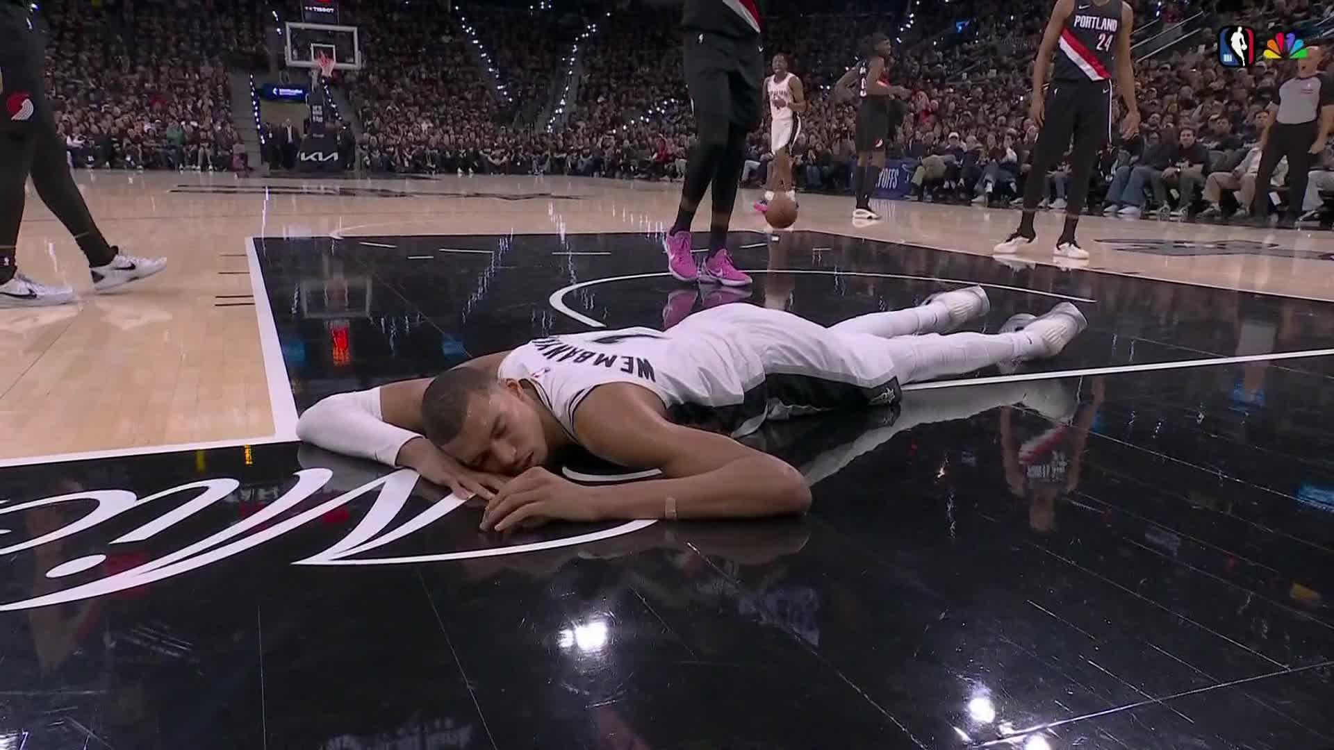 Wemby en protocolo de conmoción tras dura caída ante Blazers