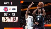 ¡Ganó el líder! Detroit triunfó por 129 a 108 frente a New Orleans Pelicans