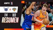 Charlotte ganó 114 a 103 con Kon Knueppel como figura (26 puntos y 11 rebotes). En New York, Jalen Brunson se destacó también con un doble-doble (26 unidades y 13 asistencias).