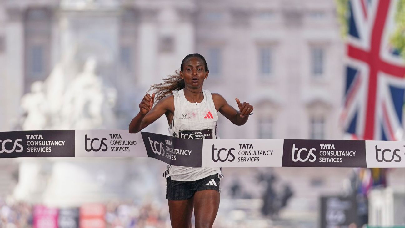 La etíope Tigst Assefa estableció un récord en el maratón de Londres al ganar con 2:15.50.
