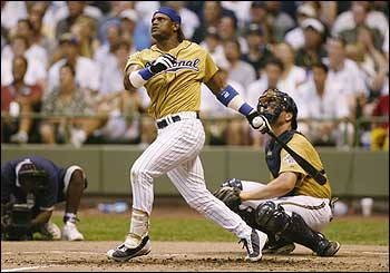 En el Juego de Estrellas del 2002, Sammy le pega con alma y vida y se une a los miles de pares de ojos que sigue el larguísimo viaje de la bola