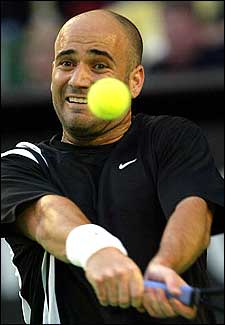 Con la mirada fija en la bola, el Kid de Las Vegas pega su característico revés a dos manos.