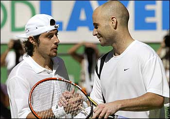 El Kid de Las Vegas saluda al francés Sebastien Grosjean a quien venció en los cuartos de final con un contundente 6-3, 6-2 y 6-2.
