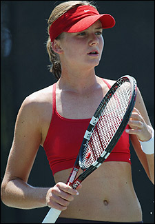 Hasta en las prácticas Daniela parece estar super concentrada... o está mirando como Anna Kournikova atrae a la prensa vistiendo al ropa interior que promociona.
